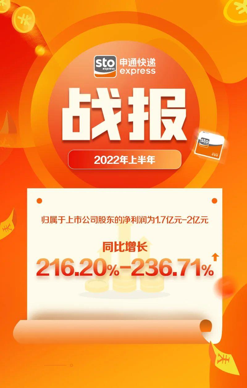 7月14日晚間,申通快遞股份有限公司發(fā)布2022年半年度業(yè)績預告。