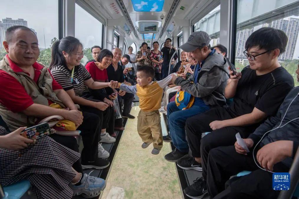 9月26日,乘客體驗空軌列車。新華社發(fā)(杜子璇 攝)